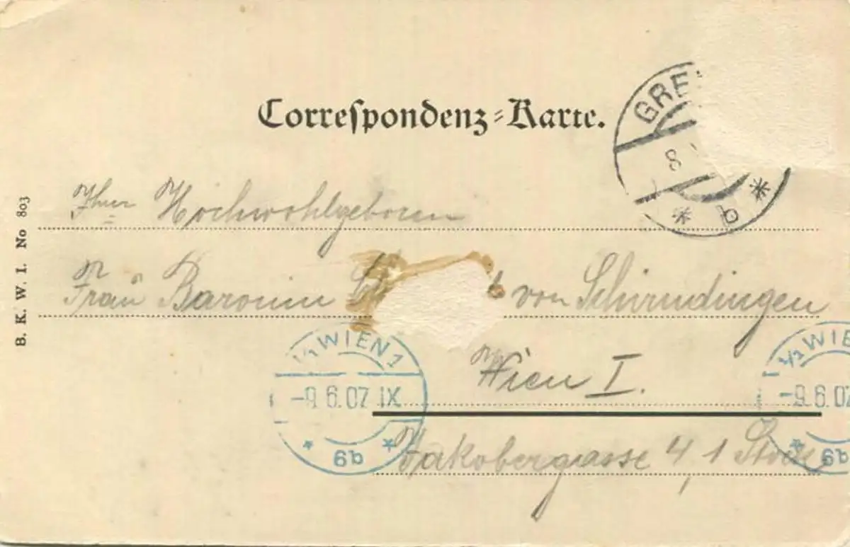 Grein - Marke abgerissen - rückseitig Klebestelle und Papierschaden - Ecken bestossen (E24844) gel. 1907