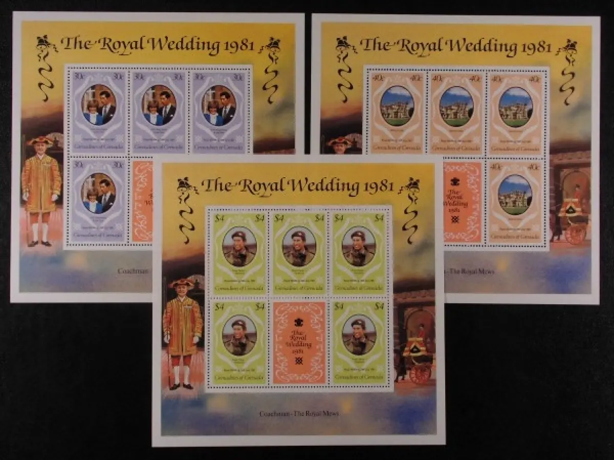 Hochzeit von Prinz Charles und Diana, 3 Kleinbögen.