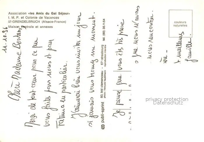 Grendelbruch_Bas_Rhin_Alsace Association les Amis du Gai Séjour IMP et Colonie de Vacances Grendelbruch_Bas postalisch nicht gelaufen 1996 Erhaltung siehe scans [FriedD77] Frierer