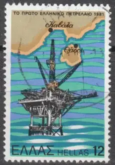 Beginn der 1. Erdölbohrung in Griechenland: Bohrturm, Landkarte
