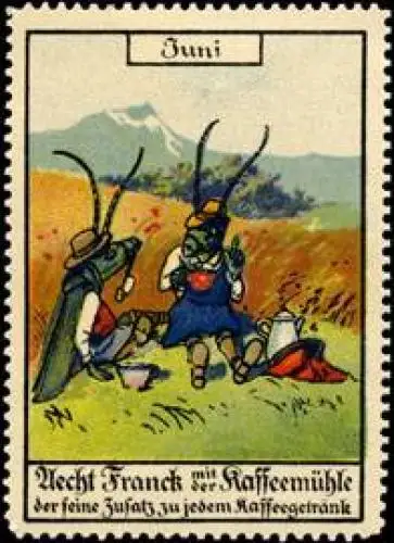 Aecht Franck mit der Kaffeemühle, der feine Zusatz zu jedem Kaffeegertänk. Monatsserie, Größe/Zustand: 6x4 , guter Zustand, Original alte Reklamemarke die seinerzeit für die Werbung benutzt wurde