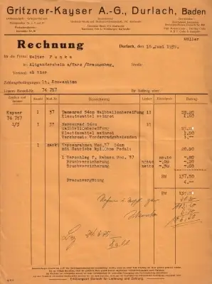 Gritzner Rechnung 1935
