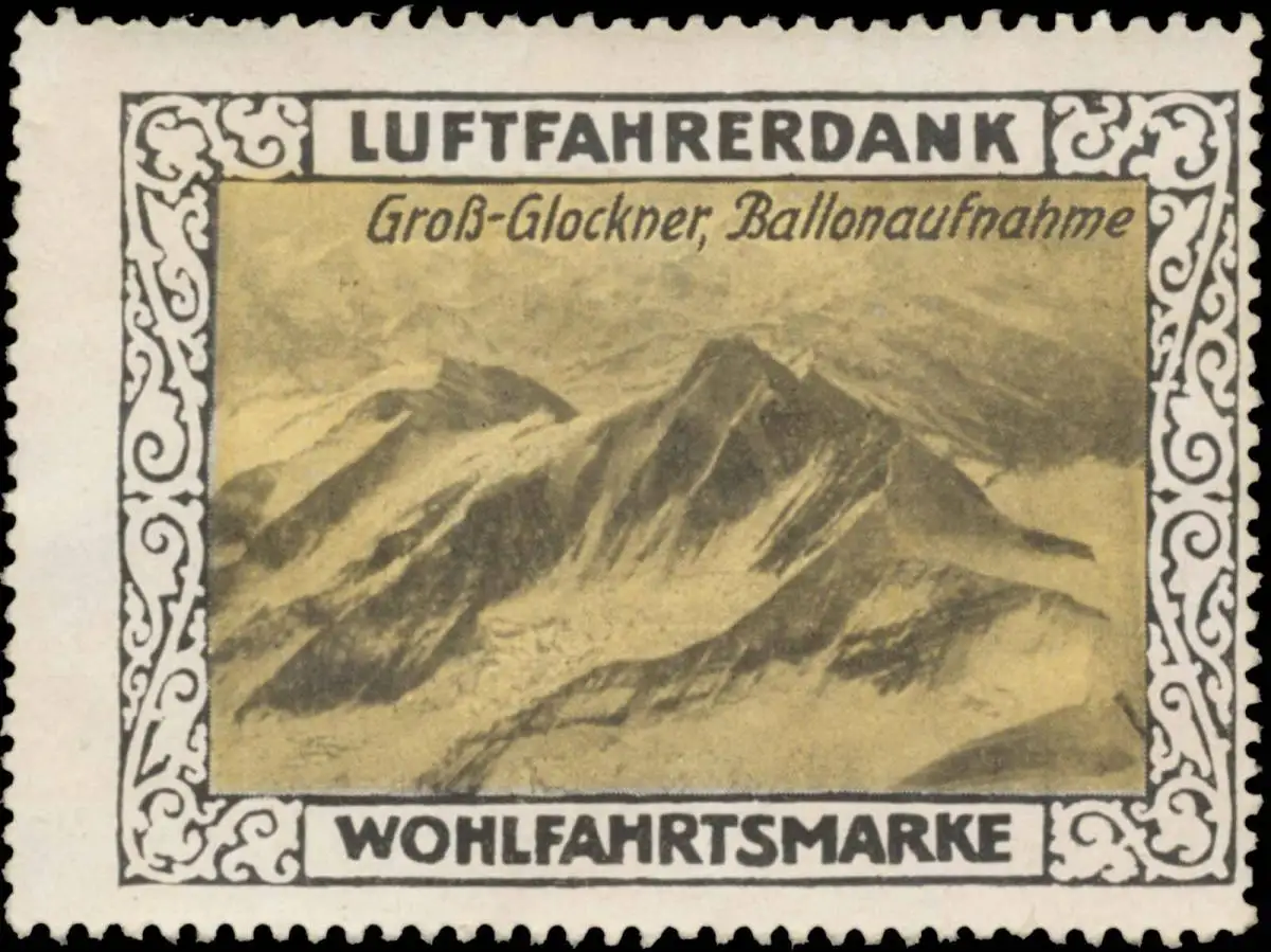 Ballon, Aviatik, Flugmarke, Luftfahrerdank, Wohlfahrtsmarke, Groß-Glockner, Berge, Größe/Zustand: 4x6 , guter Zustand, Original alte Reklamemarke die seinerzeit für die Werbung benutzt wurde