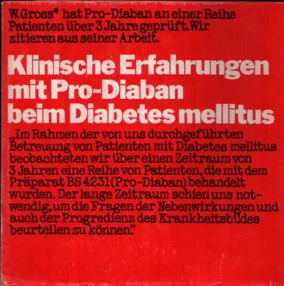 Klinische Erfahrungen mit Pro-Diaban beim Diabetes Mellitus W. Gross hat Pro-Diaban an einer Reihe Patienten über 3 Jahre geprüft. Wir zitieren aus seiner Arbeit