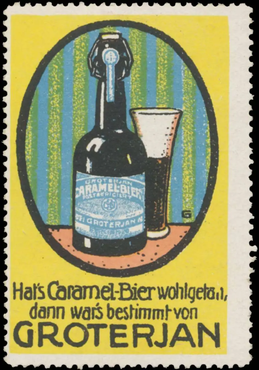 Hats Caramel-Bier wohlgetan, dann wars bestimmt von Groterjan, Größe/Zustand: 6x4 , guter Zustand, Original alte Reklamemarke die seinerzeit für die Werbung benutzt wurde