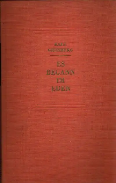 Es begann im Eden; Grünberg, Karl; Roman; vier Novellen; Flucht aus dem Eden; Verlorene Ich; Heimkehrer Burscheidt; Soldatenmutter; Berlin; Wohlfahrtsamt; Stempelstelle; Essenmarken; Hunger; Elend; Blutspur; Massenschlächterei; Weimarer Republik; Todesfabrik; KZ
