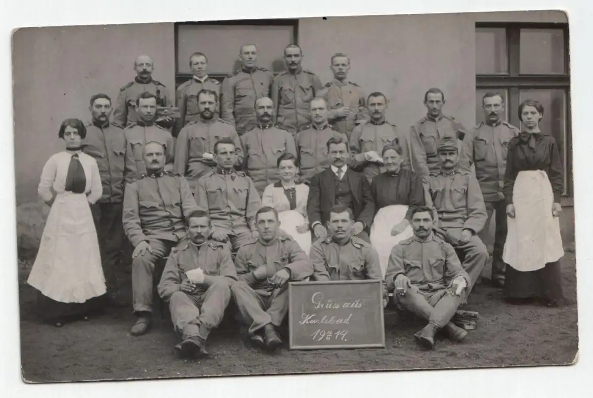 Grüss aüs Karlsbad 1914. Gruppe von Leuten.