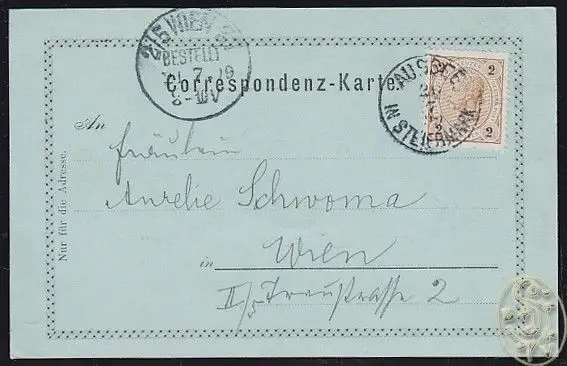 Bemerkungen: Gelaufen: Aussee - Wien, 1899.