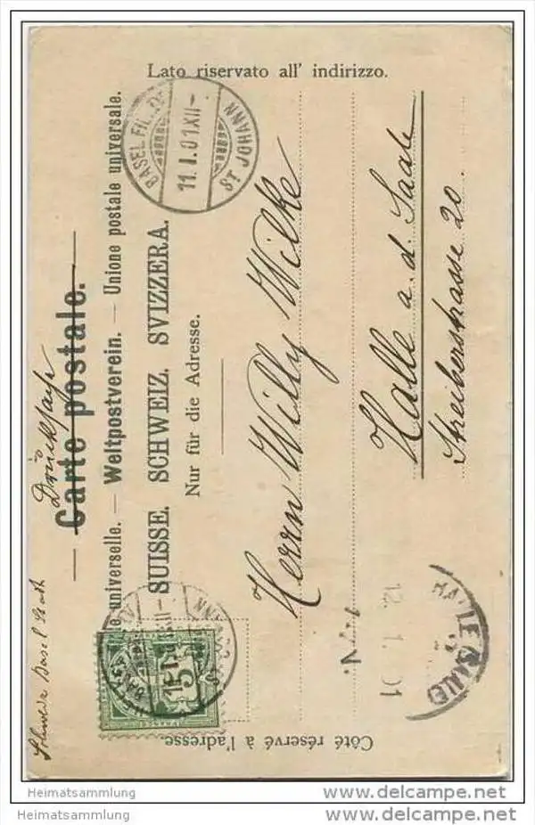 Gruss aus Basel - Marienkirche - Verlag Gebr. Metz Basel - Ecken bestossen (E6015) gel. 1901