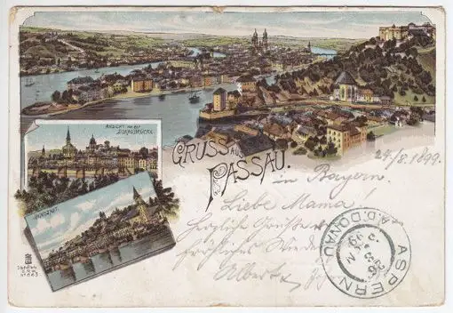 Bemerkungen: Gelaufen: Passau - Aspern a. d. Donau, 1899. Passau (kreisfreie Stadt in Niederbayern).