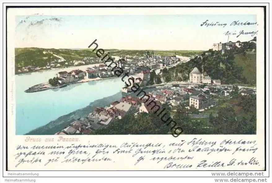 Gruss aus Passau - Totalansicht - Verlag Fritz Moritz Passau (E5546) gel. 1901