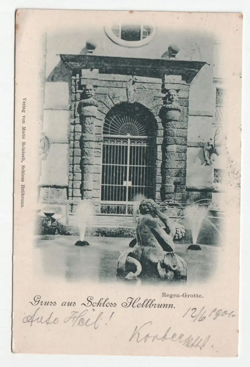 Gruss aus Schloss Hellbrunn. Regen-Grotte. jahr 1901