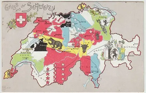 Bemerkungen: Gelaufen: - Wien, 1909. Marke fehlt. Mit allen Kantonen der Schweiz.