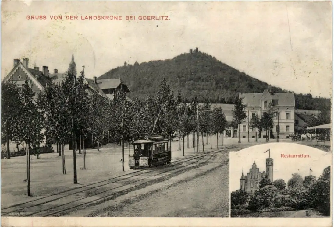 Gruss von der Landskrone bei Görlitz - Strassenbahn -478640