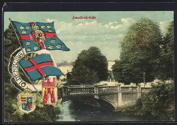 Grusskarten-AK Oldenburg / O., Amalienbrücke mit Flaggen