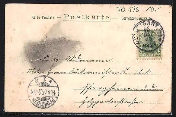 alte Ansichtskarte, gelaufen 1905, Eckknicke unten, guter Zustand