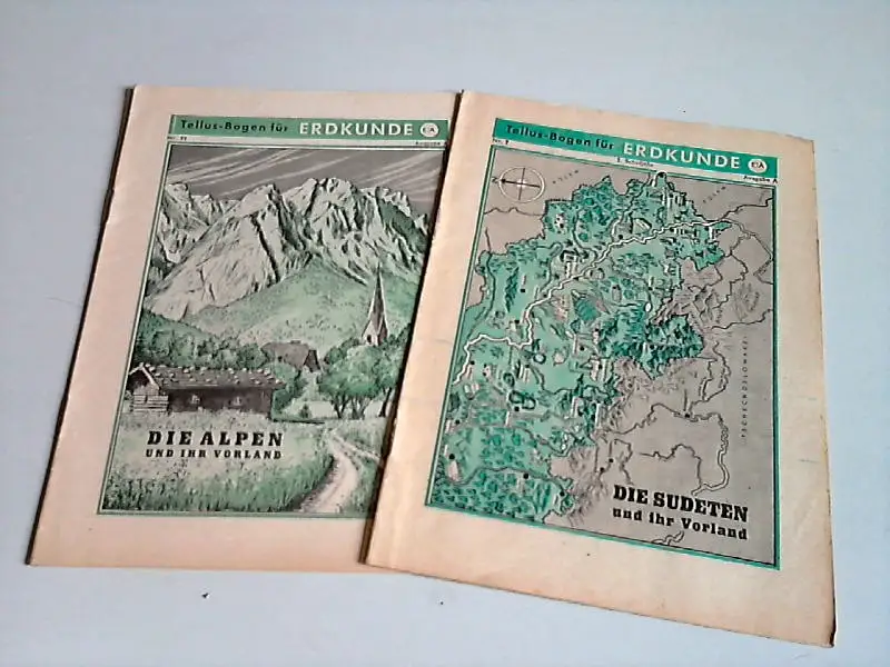 die Bögen sind ein Dachbodenfund, gebräunt, fleckig, aus dem Inhalt: NR. 7: Die Sudeten und ihr Vorland - NR. 11: Die Alpen und ihr Vorland Beschreibung vom Antiquariat Ardelt 3c3a Antiquariat Ardelt
