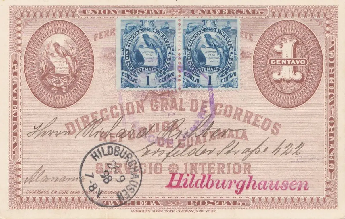 Guatemala: 1898: Servicio interior post card to Hildburghausen