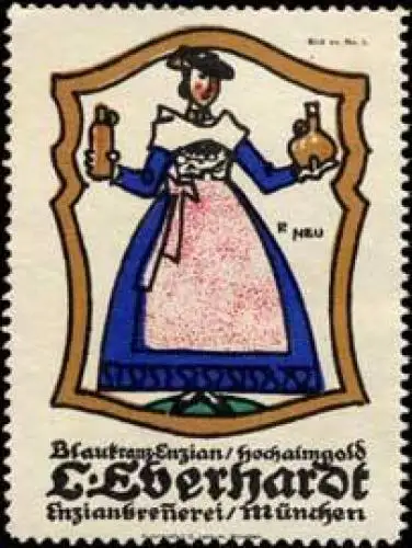 Bild zu Nr. 1, Blaukranz Enzian / Hochalmgold L. Eberhardt Enzianbrennerei, Größe/Zustand: 6x4 , guter Zustand, Original alte Reklamemarke die seinerzeit für die Werbung benutzt wurde