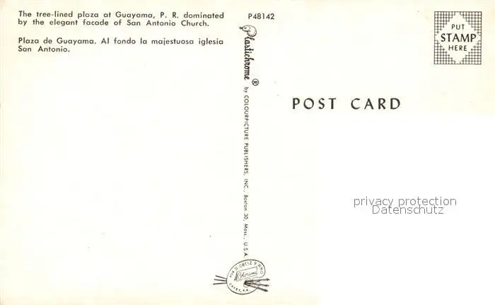 Guayama Plaza Iglesia San Antonio postalisch nicht gelaufen nach 1965 Erhaltung siehe scans [WerneD78] WernPID7