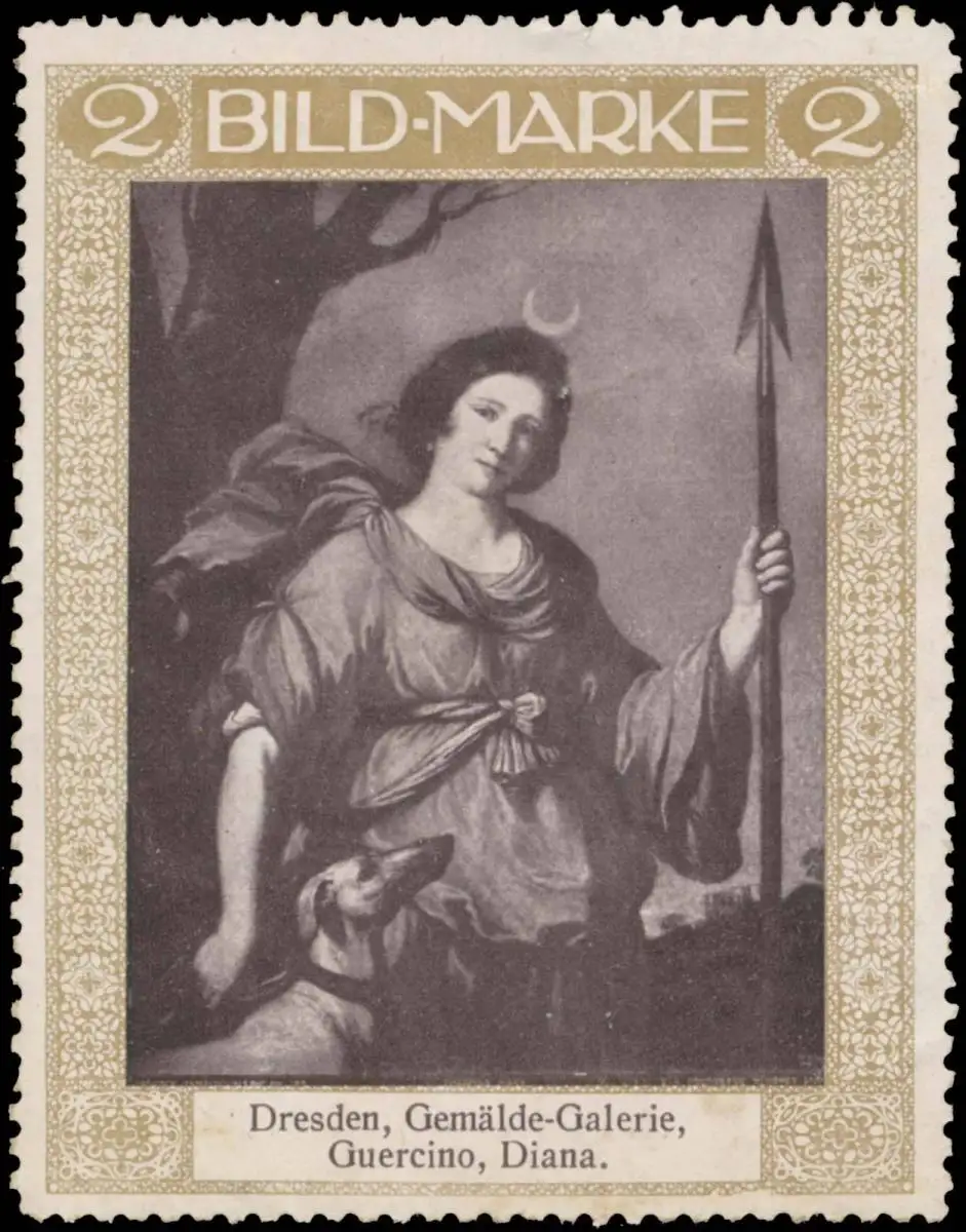 Giovanni Francesco Barbieri, Gemälde-Galerie Dresden, Bildmarke, Größe/Zustand: 7x6 , guter Zustand, Original alte Reklamemarke die seinerzeit für die Werbung benutzt wurde