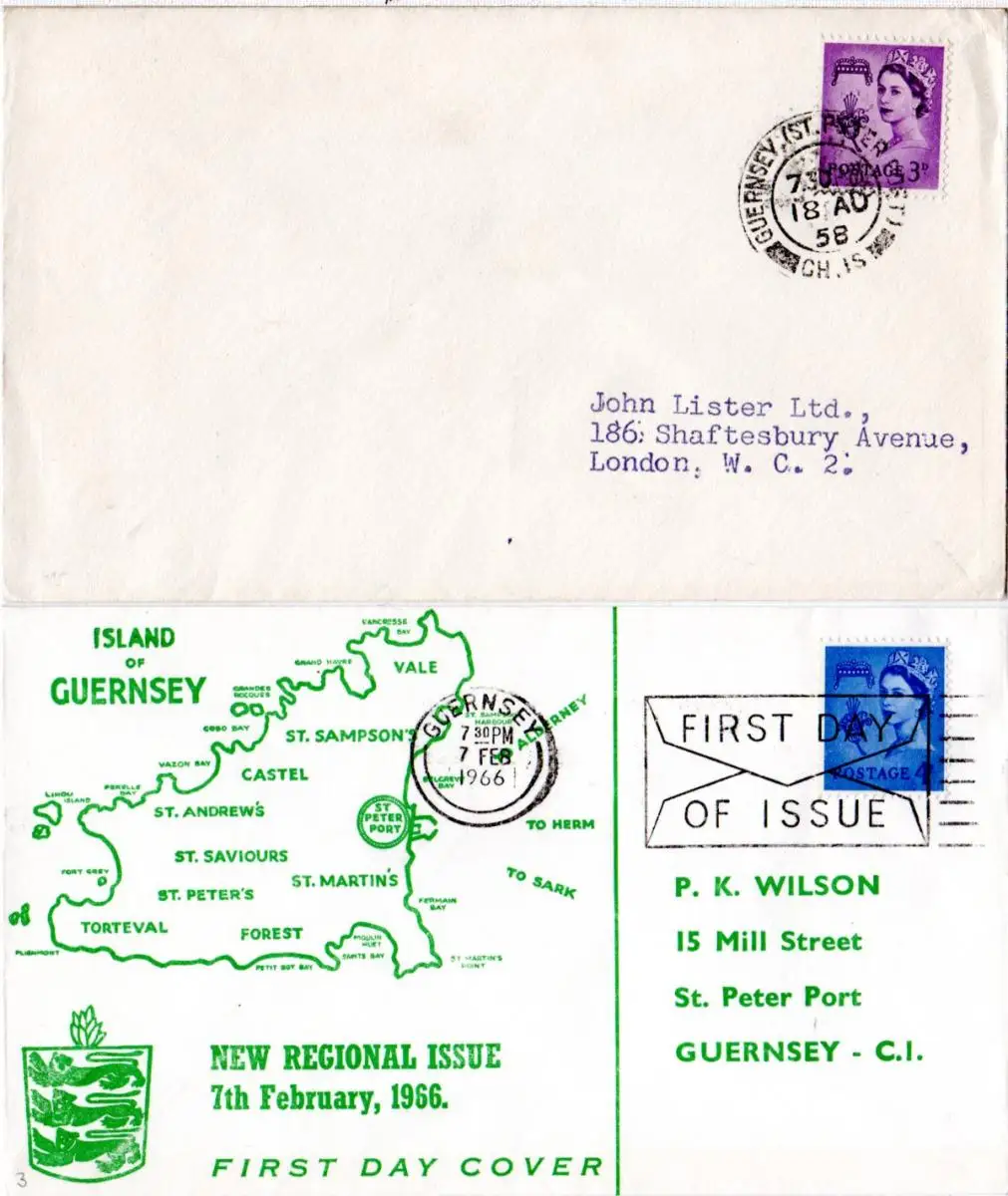 Guernsey 1958/66, 3 u. 4d auf 2 schönen FDC