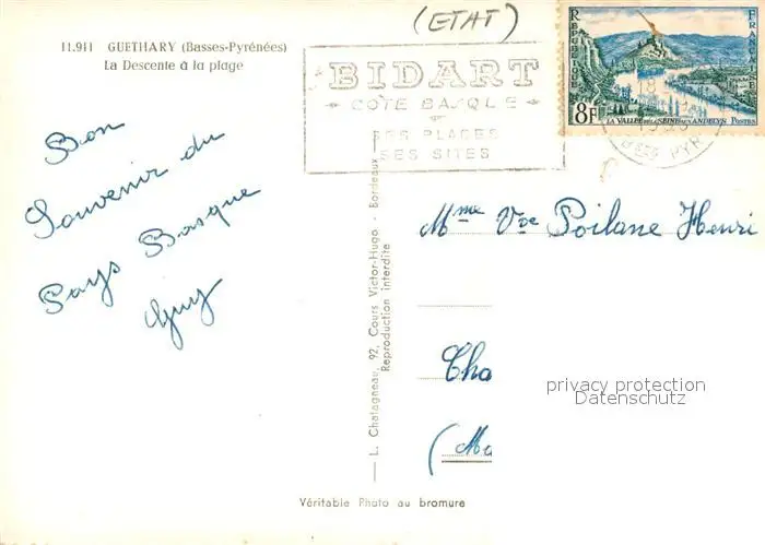 Guethary La descente à la plage Guethary postalisch gelaufen 1965 Erhaltung siehe scans [FriedD77] Frierer