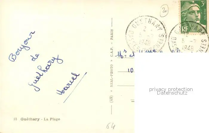 Guethary Plage Guethary postalisch gelaufen 1948 Erhaltung siehe scans [LiesaD40] LiesID40