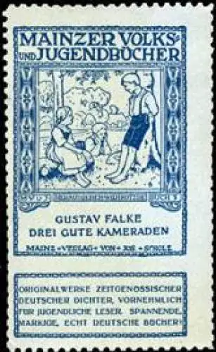 Mainzer Volks - und Jugendbücher, Originalwerke zeitgenössischer Deutscher Dichter, vornehmlich für Jugendliche Leser. Spannende, Markige, echt Deutsche Bücher ! Rückseite mit Reklame., Größe/Zustand: 6x3 , guter Zustand, Original alte Reklamemarke die seinerzeit für die Werbung benutzt wurde