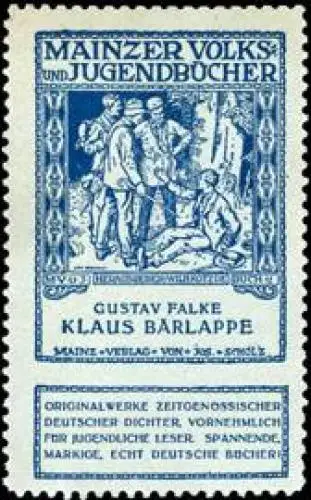 Mainzer Volks - und Jugendbücher, Originalwerke zeitgenössischer Deutscher Dichter, vornehmlich für Jugendliche Leser. Spannende, Markige, echt Deutsche Bücher ! Rückseite mit Reklame., Größe/Zustand: 6x3 , guter Zustand, Original alte Reklamemarke die seinerzeit für die Werbung benutzt wurde