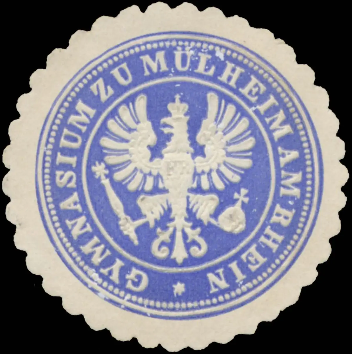 Schule, blau, weiß, geprägt, Größe/Zustand: 4 , guter Zustand, Original Verschluss-Siegelmarke aus Papier welche früher von Behörden, Firmen etc. zum Versiegeln der Briefe benutzt wurden