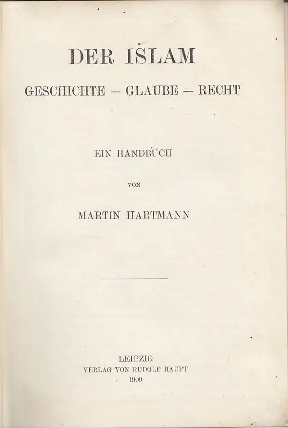 HARTMANN, Der Islam. Geschichte - Glaube -... 1909