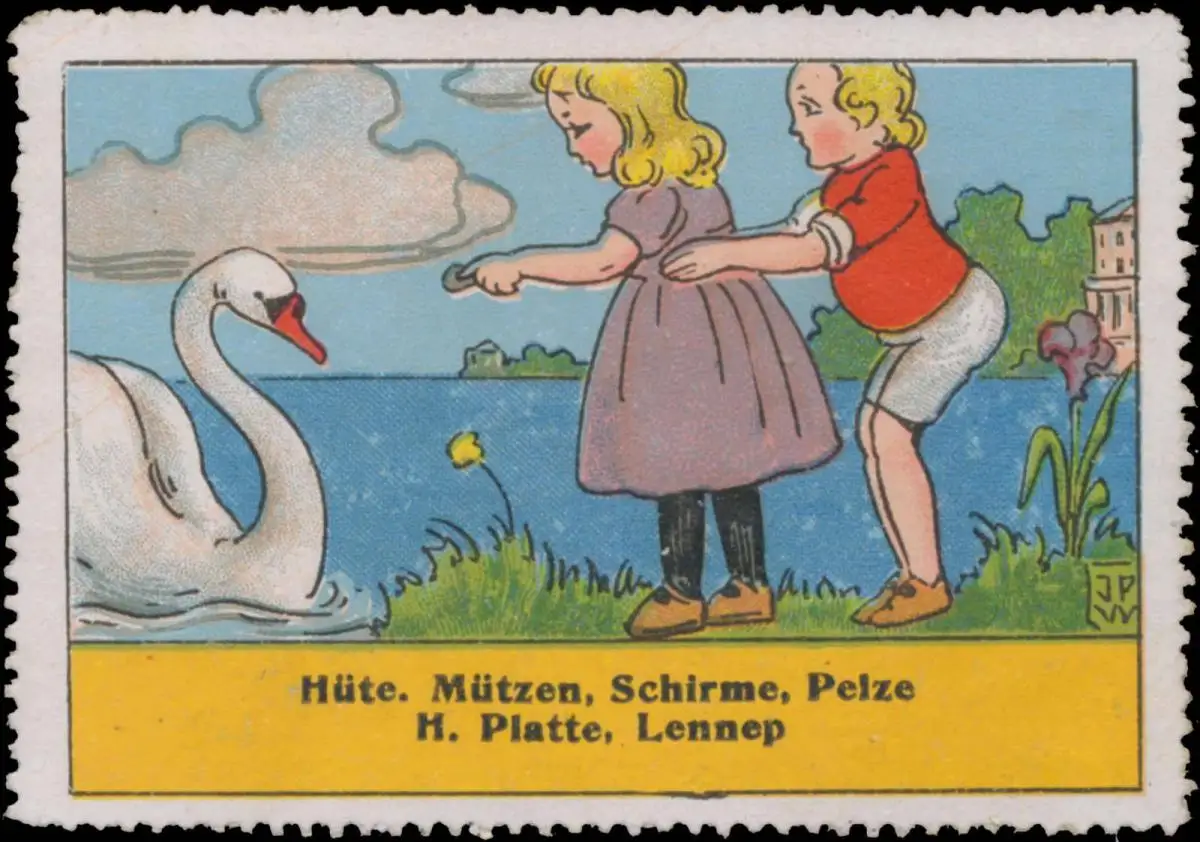 Kinder füttern Schwan, Remscheid, Größe/Zustand: 5x7 , guter Zustand, Original alte Reklamemarke die seinerzeit für die Werbung benutzt wurde
