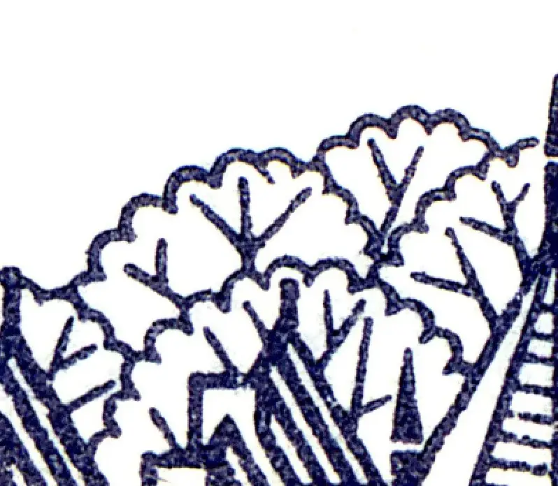 MICHEL-Plattenfehler IV auf Feld 1: Strich in der Baumkrone