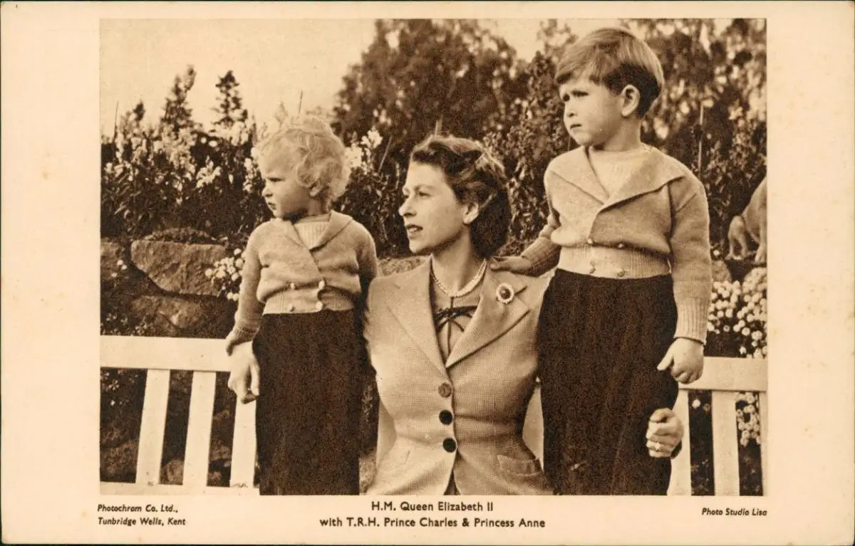 H.M. Queen Elizabeth II with Prince Charles & Princess Anne Adel Monarchie 1954