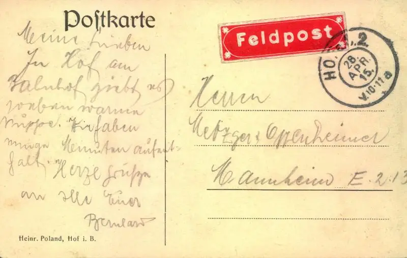 HOF, 1915, KÖNIGLICHE FILIALBANK, gelaufen, Feldpost