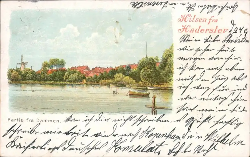 Hadersleben Haderslev Panorama-Ansicht vom Fluss und dem Ort - Zeichnung 1901