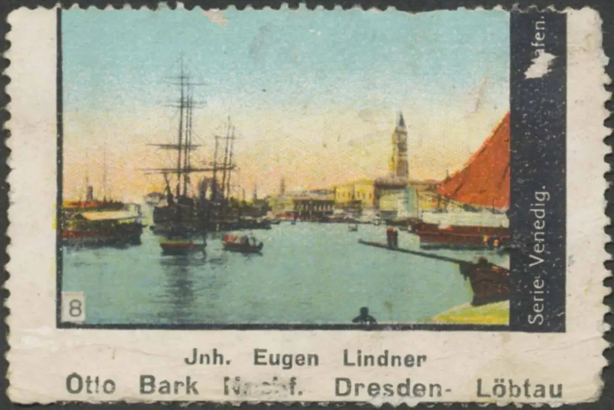 Schiff, Löbtau, Inhaber: Eugen Lindner, Größe/Zustand: 4x6 , beschädigt, Original alte Reklamemarke die seinerzeit für die Werbung benutzt wurde