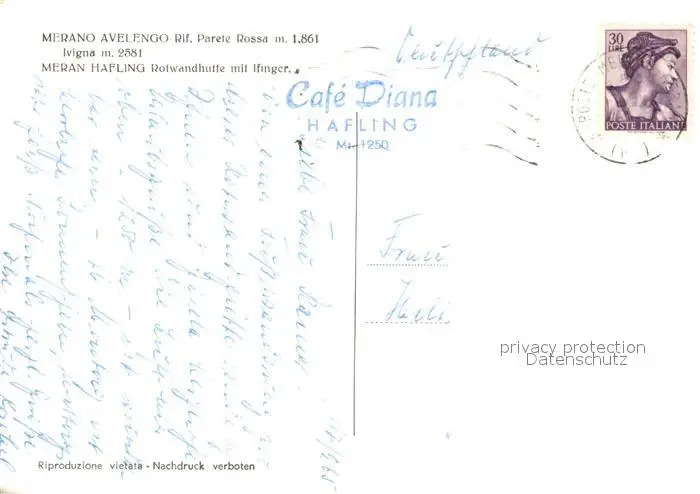 Hafling Rotwandhuette mit Ifinger Hafling postalisch gelaufen 1965 Erhaltung siehe scans [FriedD77] Frierer