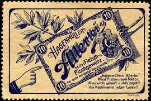 bestes Fleisch - und Fischgewürz, Monogramm : M. & F. i. S., Größe/Zustand: 4x6 , guter Zustand, Original alte Reklamemarke die seinerzeit für die Werbung benutzt wurde