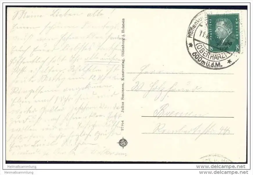 Hahnenklee Oberharz - Bockswiese - Verlag Julius Simonsen Oldenburg (E5223) gel. 1930