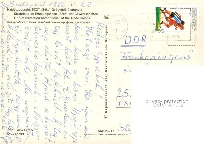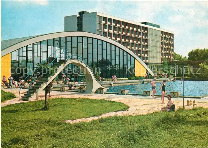 Hajdúszoboszló Strandbad Erholungsheim Beke der Gewerkschaften Hajdúszoboszló postalisch gelaufen 1986 Erhaltung siehe scans [FriedD77] Frierer