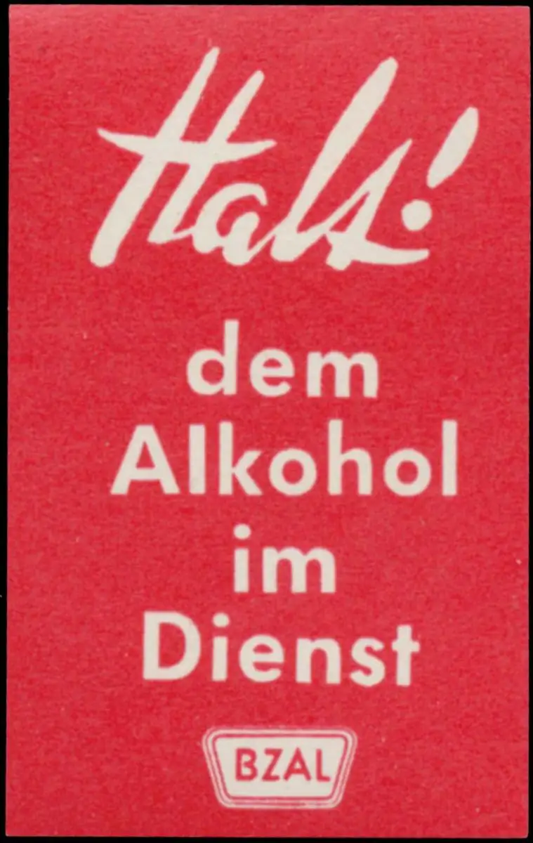 Bundesbahn, Eisenbahn, Bundesbahn-Zentralstelle gegen die Alkoholgefahren, Größe/Zustand: 5x3 , guter Zustand, Original alte Reklamemarke die seinerzeit für die Werbung benutzt wurde