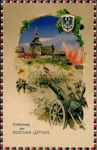 Halt gegen das Licht Passepartout Ak Lüttich Wallonien, Erstürmung der Festung Lüttich, Geschütz