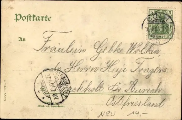 gelaufen 1905, Eckknicke, sonst guter Zustand