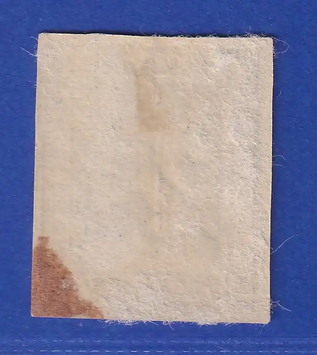 Rückseitig an der linken unteren Ecke dunkle Verfärbung.