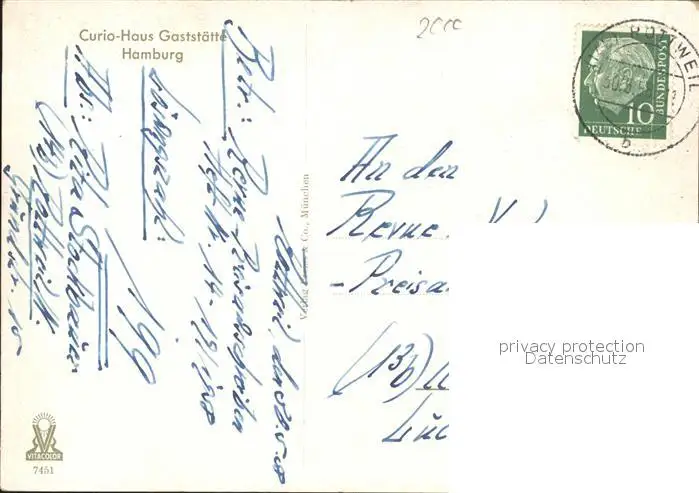 Hamburg Curio-Haus Restaurant Hamburg postalisch gelaufen 1958 Erhaltung siehe scans Alte Ansichtskarte Postkarte hz Lmann
