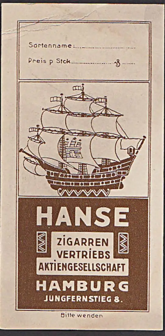 Hamburg HANSE Zigarren Vertriebsgesellschaft Abb. Segelschiff