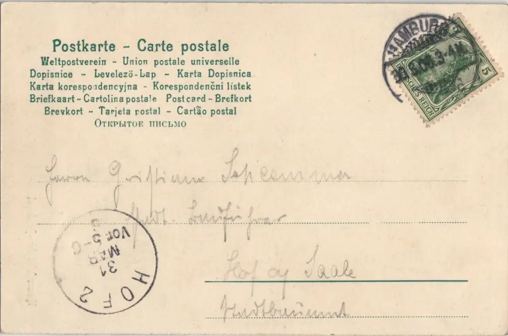 gelaufen nach HOF (Ankunftsstempel)