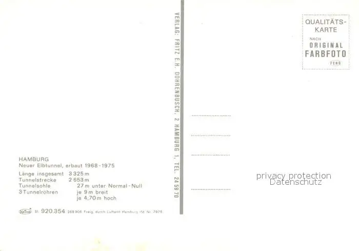 Hamburg Neuer Elbtunnel Hamburg postalisch nicht gelaufen nach 1965 Erhaltung siehe scans [FriedD77] Frierer